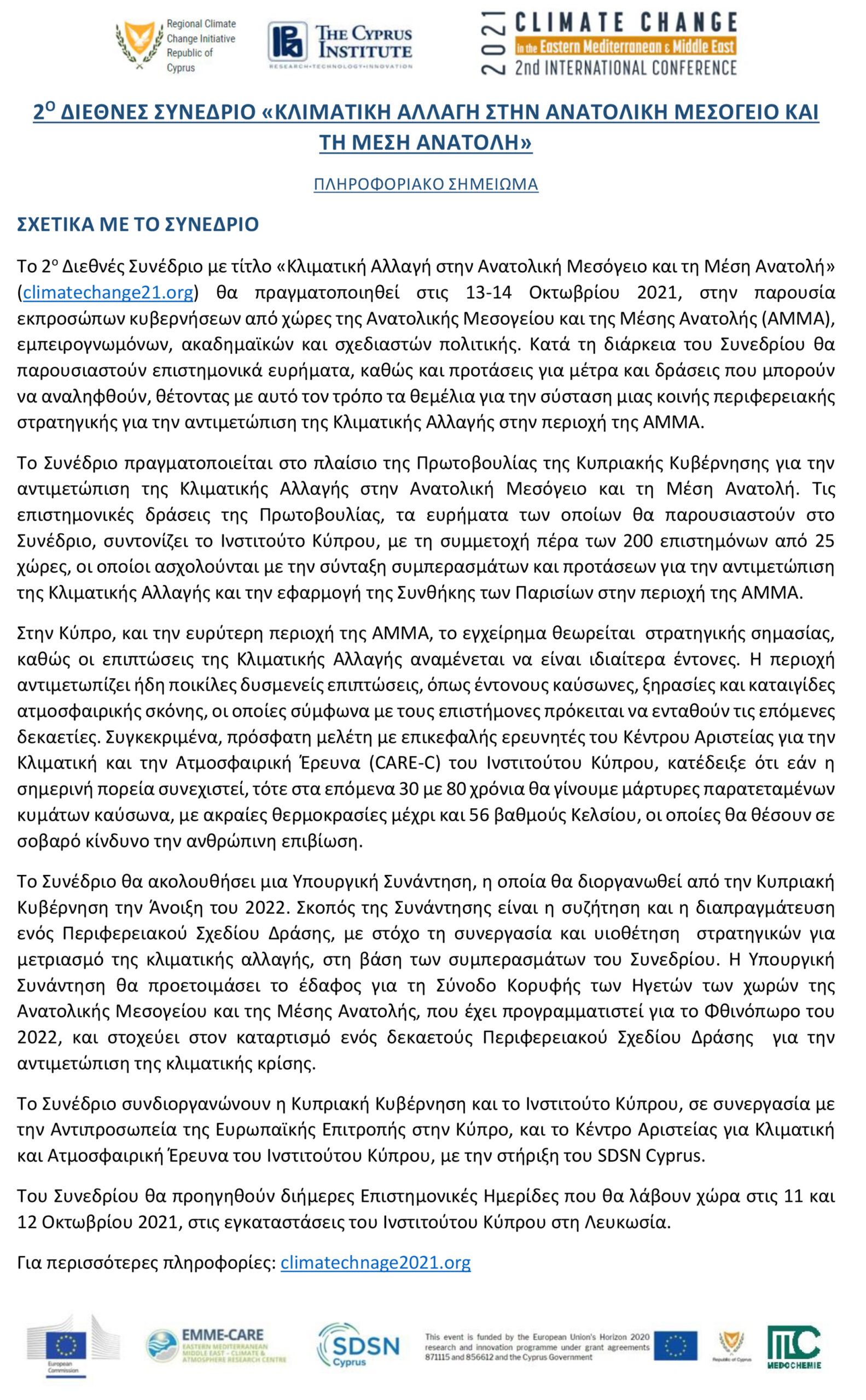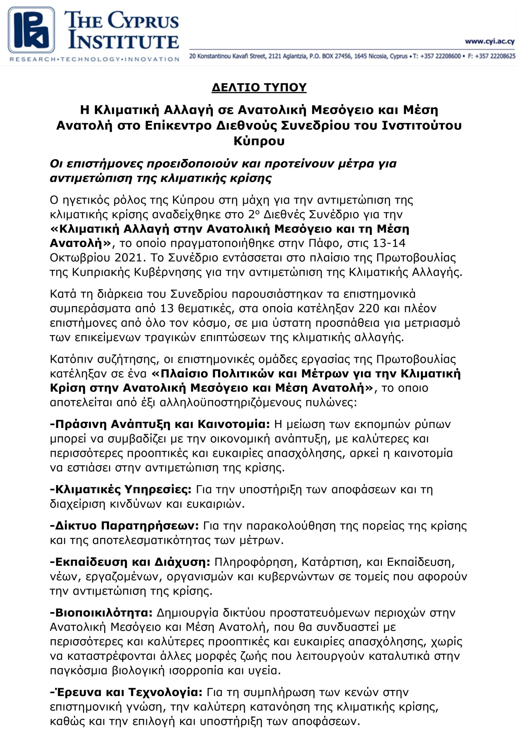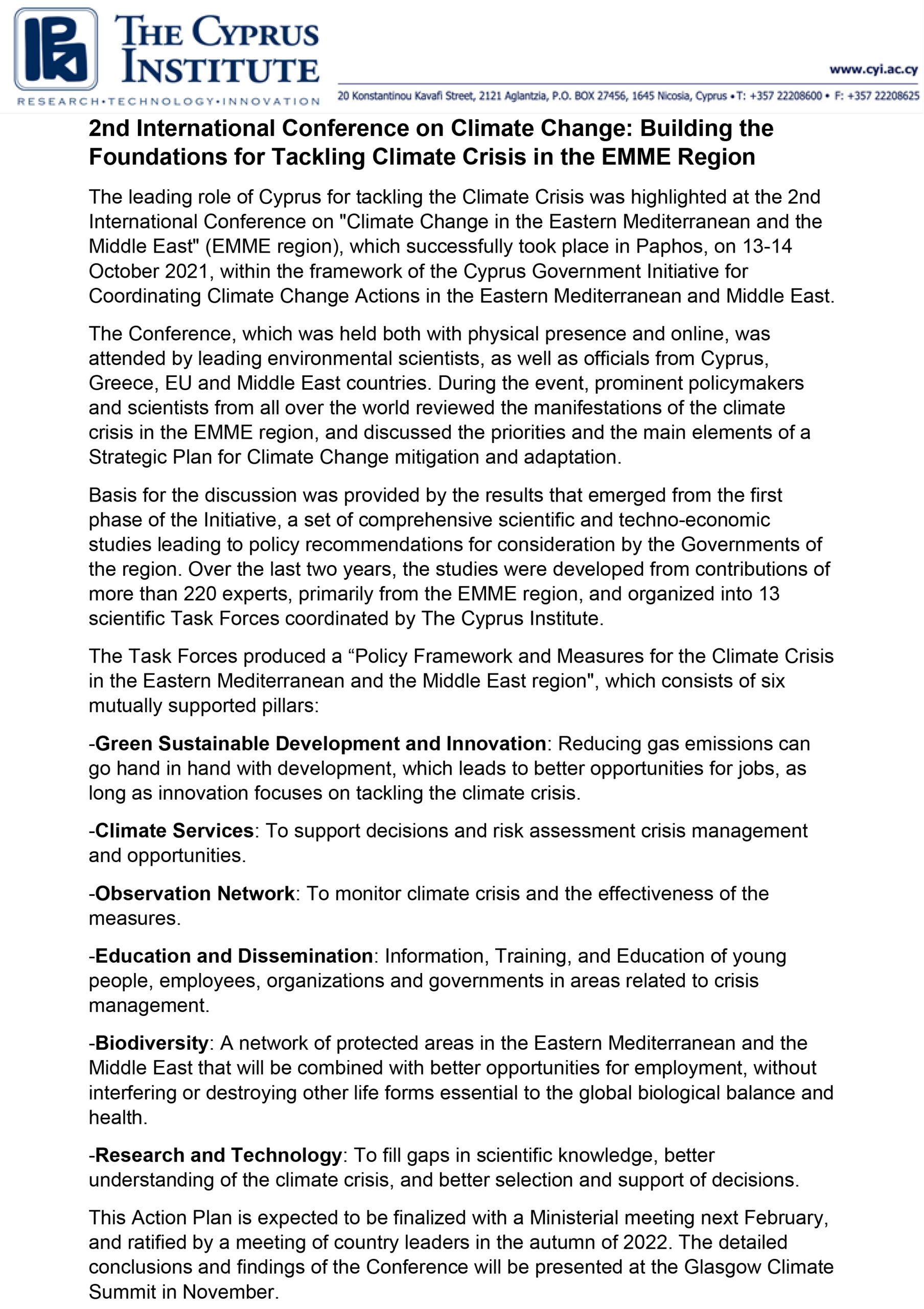 For any media enquiries about the 2021 Conference, contact us at climatechange2021@cyi.ac.cy