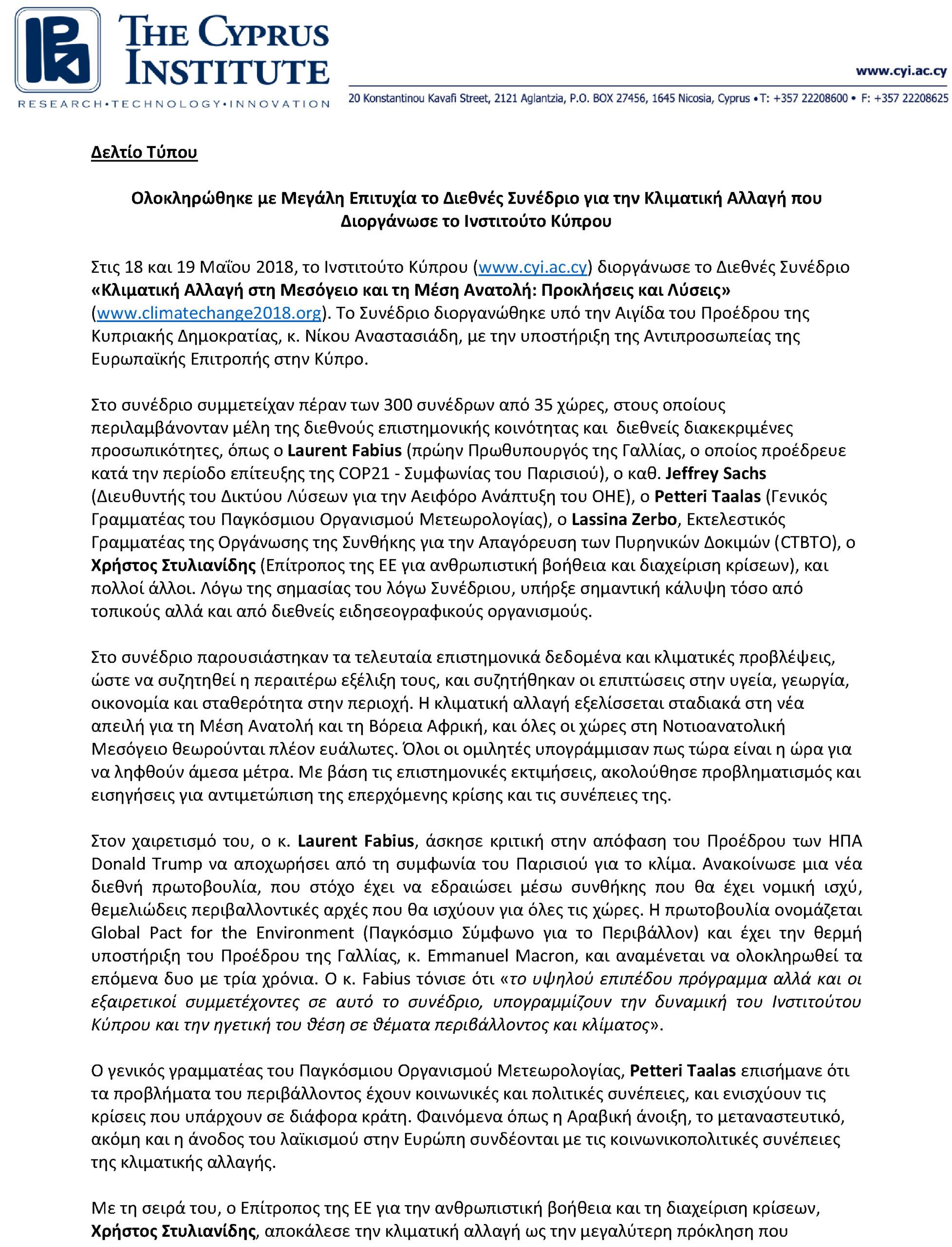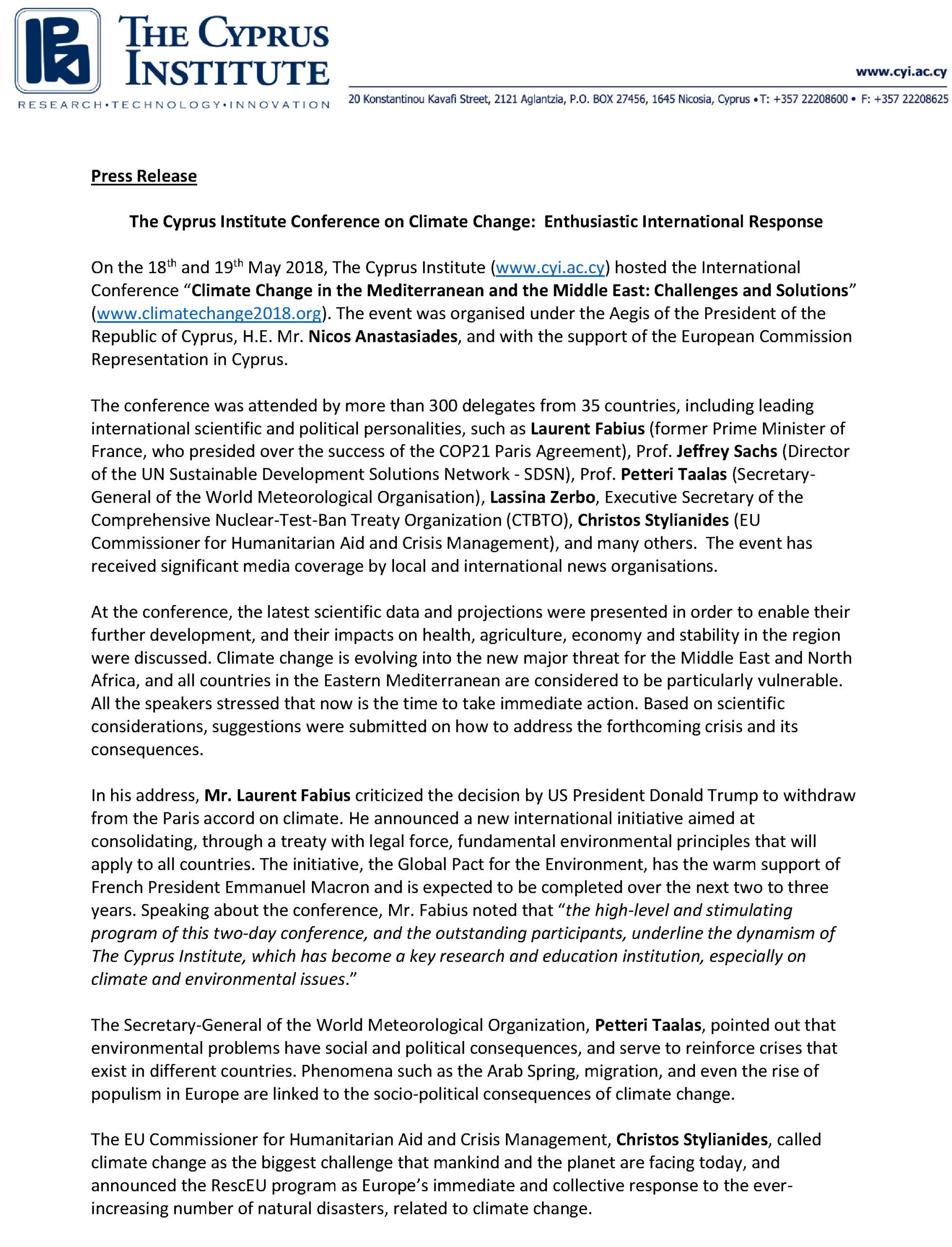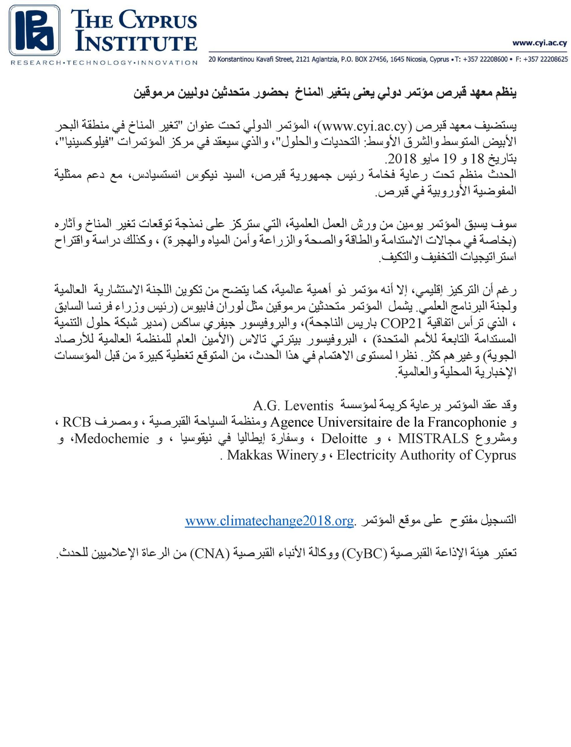 For any media enquiries about the 2021 Conference, contact us at climatechange2021@cyi.ac.cy